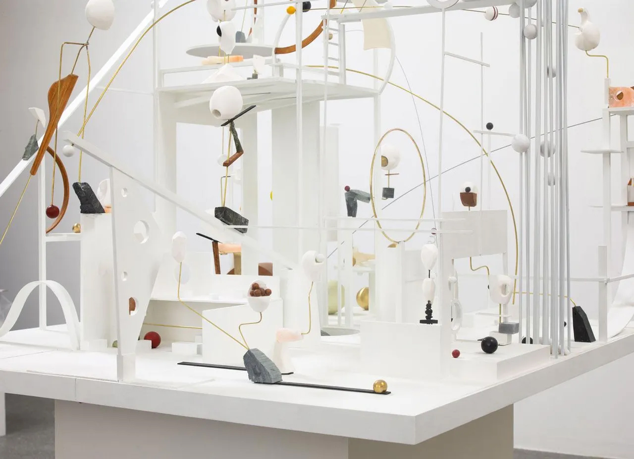 Christina Kruse, Lunapark (detail), 2021, Plaster, wood, brass, metal, glass, soapstone, alabaster, paint, 76 x 42 x 43 in (193 x 106.7 x 109.2 cm)