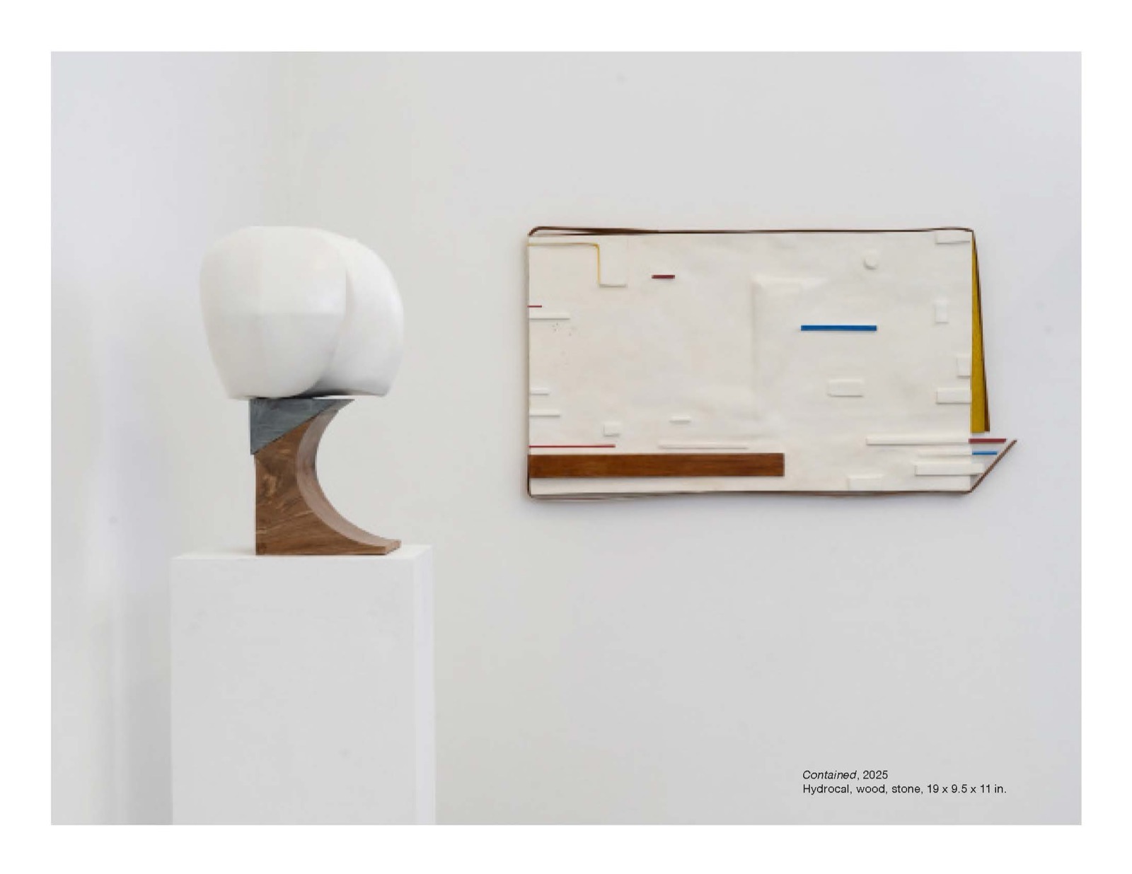 Christina Kruse, Contained (installation view), 2025, Hydrocal, wood, stone, 19 x 9.5 x 11 in (48.3 x 24.1 x 27.9 cm)